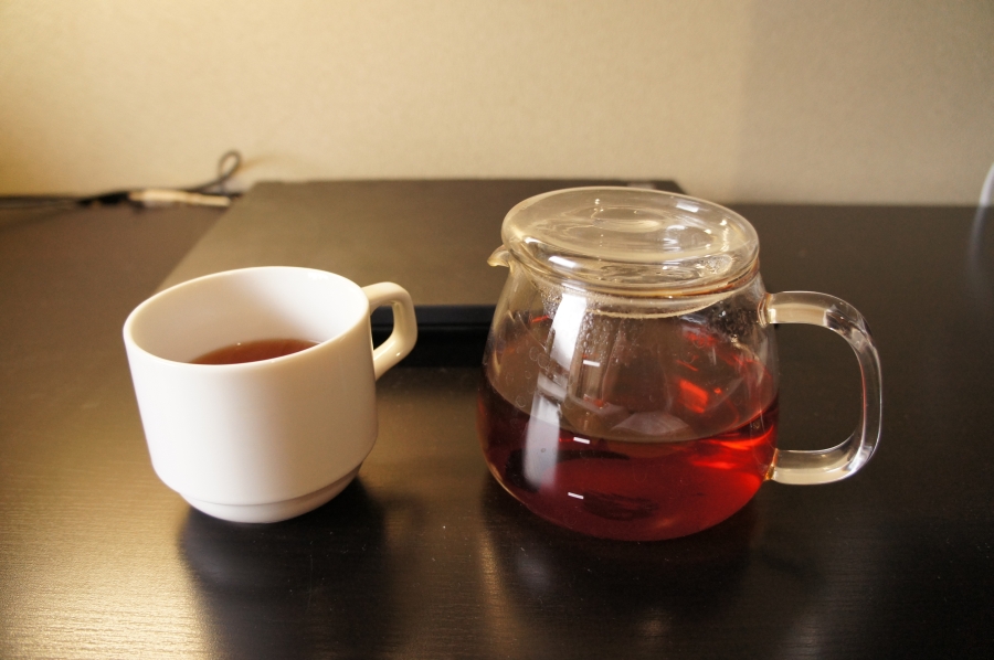 それであるときから,コーヒーメーカーのコーヒーを落とす耐熱ガラスポットに,紅茶をまとめて作ってから飲むようにしました。ティーバッグ2個で,四杯分くらい入れるのです。これがちょうどいい。ティーバッグ1個で二杯分作っているから満足だし,四杯分作ってポットで机に持ってきて,カップに少しずつ入れながら飲んでいると僕には飲みたい量としてもぴったりだったのです。